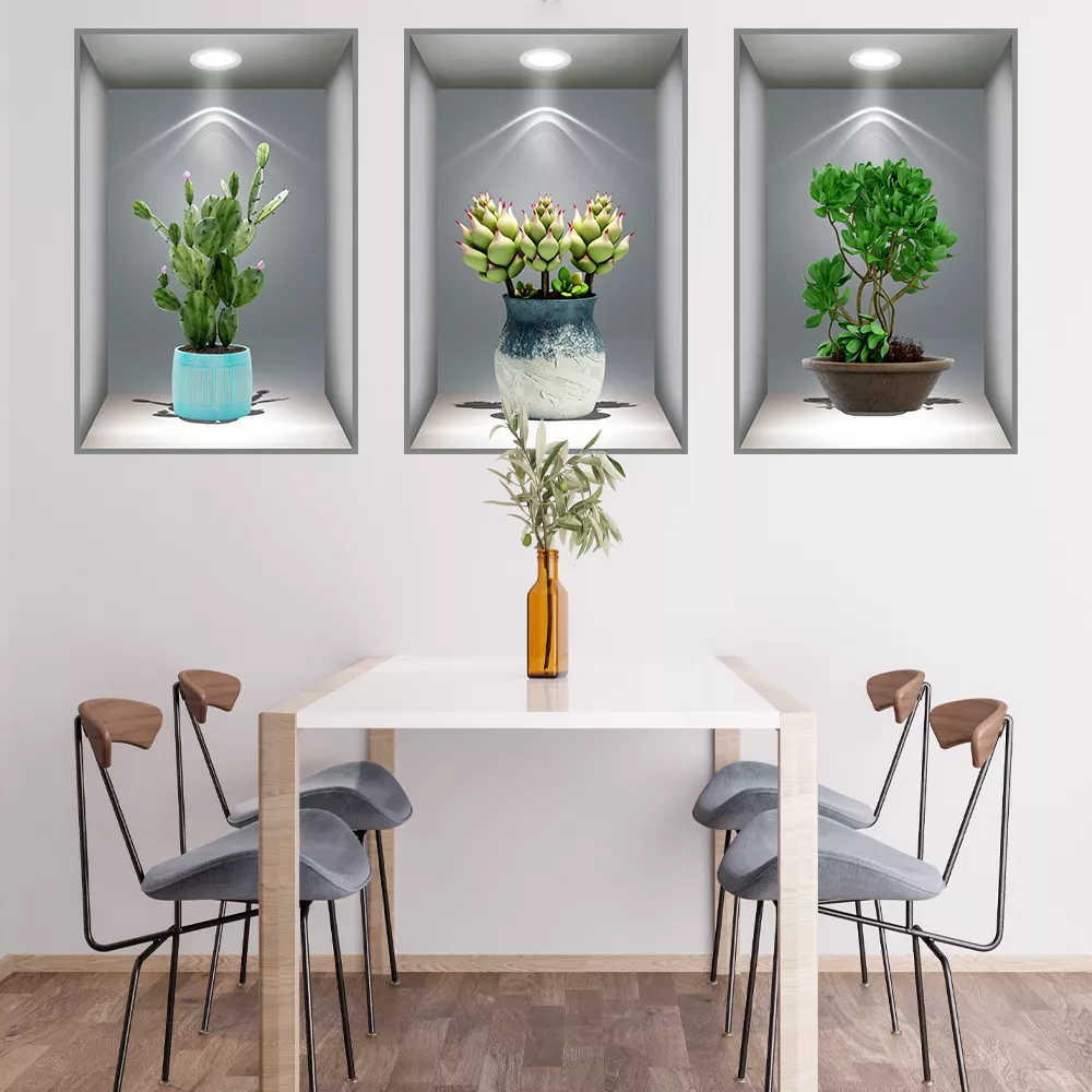 3D Potted Triptych Posters - Decorative Wall Plant Stickers