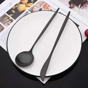 6-Piece Black Matte Stainless Steel Cutlery Set – Elegant Flatware for Modern Dining