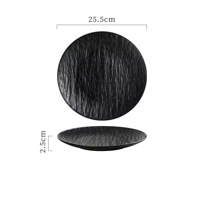 Black & White Frosted Ceramic Dinner Plate – Elegant Round Tableware